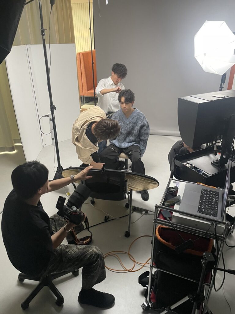 カメラのシャッター音がリズミカルに響き渡り、スタジオの空気が一気にプロフェッショナルな雰囲気に。